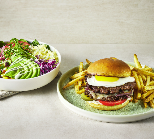 2 beef patties, cheddar, Montreal steak spice, red onions, pickles, tomatoes, mayonnaise and a sunny side egg. Served on a brioche bun | 20