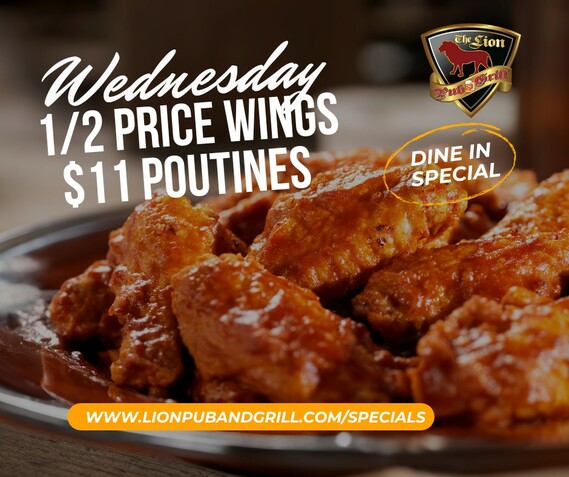 1/2 Price Wings Every Wednesday & $11 Poutines!