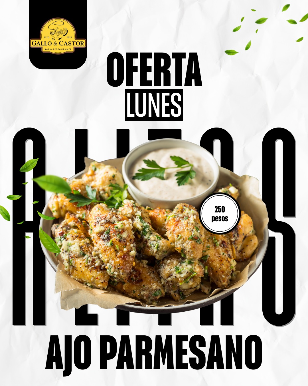 Alitas Ajo Parmesan - solo 250 pesos!