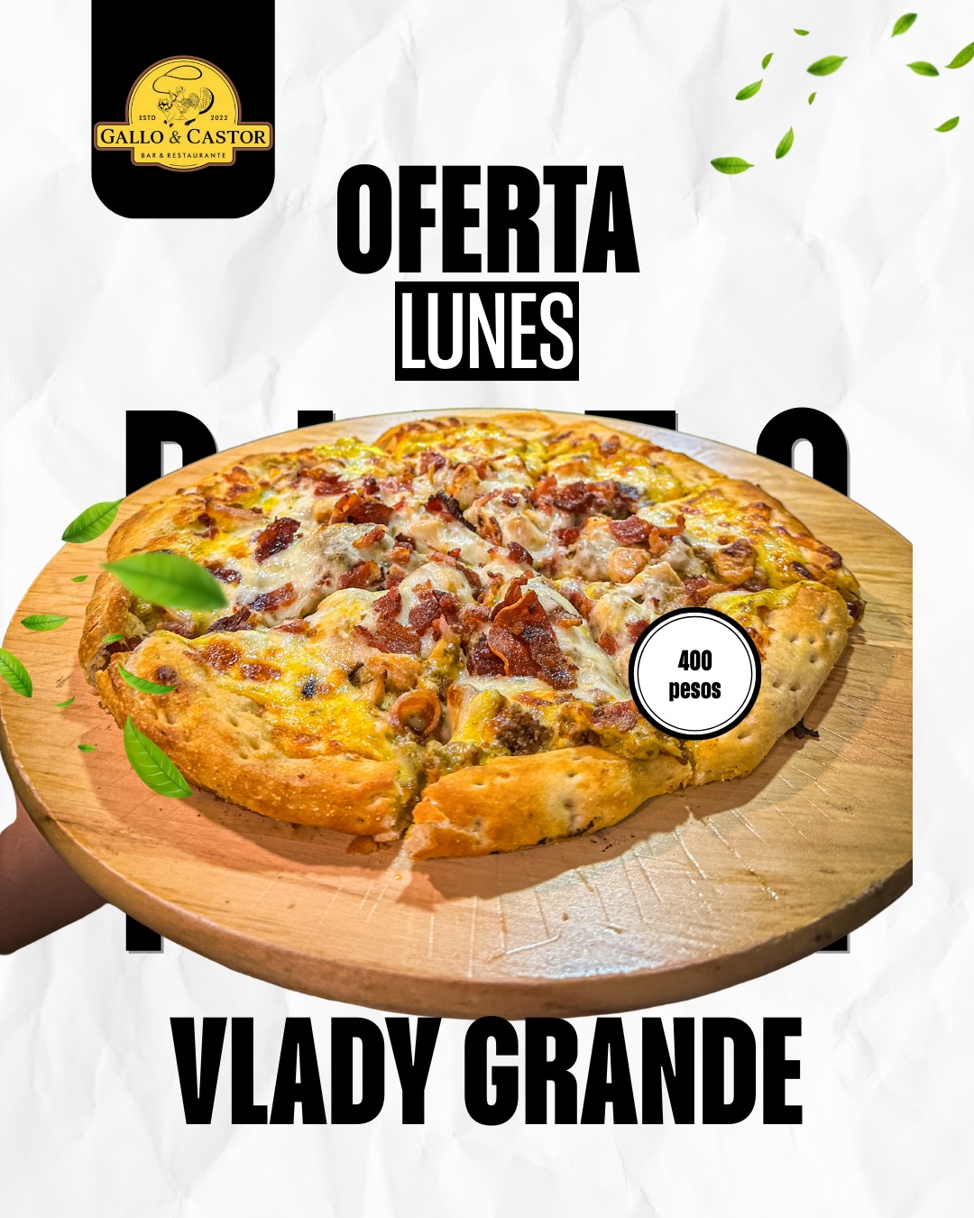 Pizza Vlady Grande solo 400 pesos!