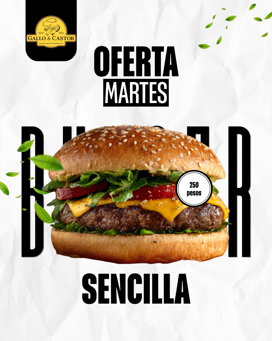 Hamburgesa Sencilla solo 250 pesos