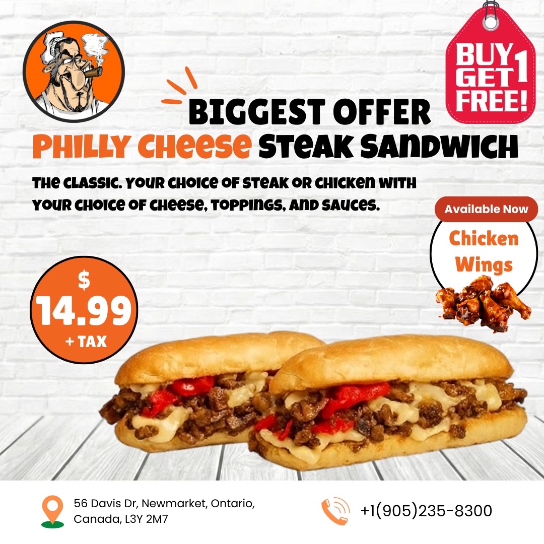 Click here to order this BOGO offer using Uber Eats from Philthy Philly's Newmarket.