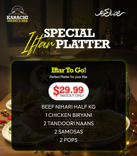 Treat yourself and a loved one to Karachi Nihari's Special Iftar Platter for just $29.99.