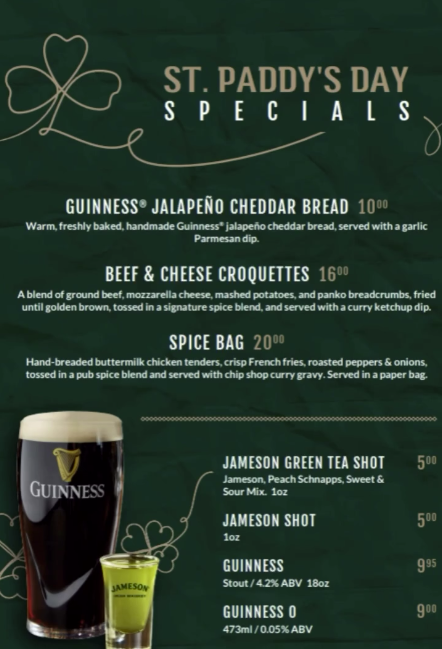 🍀🍀 ST. PADDY'S DAY SPECIALS - Available from February 24 - March 22