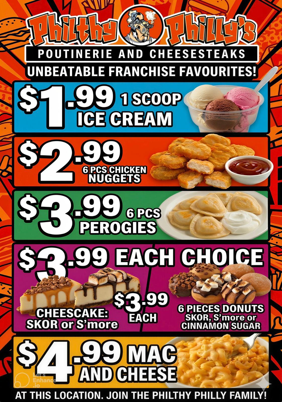 Valid everyday for Dine-in and Take-out at Philthy Phillys Pickering