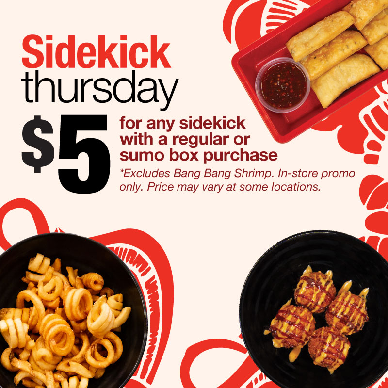 Sidekick Thursday $5 for any sidekick with a regular or sumo box purchase.