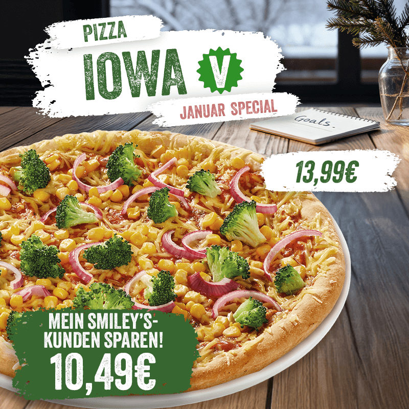 PIZZA IOWA - FÜR "MEIN SMILEY'S" - MITGLIEDER GÜNSTIGER - NUR FÜR 10,49 euro. (Für Nichtmitglieder 13,99 euro)