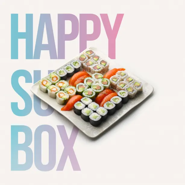 Happy Sushi Box 26,90 € 42 pièces Vos mercredis seront encore plus gourmands ! Sushi Shop vous régale avec LA box de 42 pièces à 26,90€. Disponible en click & collect et à emporter. Ingrédients et saveurs 2 Sushi Saumon Teriyaki 6 Maki Concombre 6 California Thon Cuit Avocat 6 Spring Fried Chicken Avocat 4 Sushi Saumon 6 Maki Cheese Avocat 6 California Saumon Avocat 6 Spring Saumon Avocat