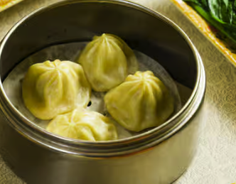 Chicken Soup Dumplings 4 pieces of chicken filled dumplings filled with broth.