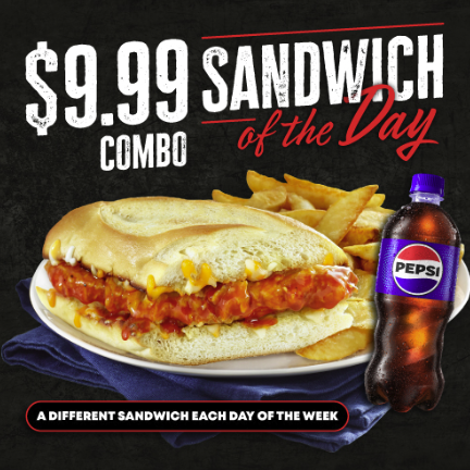 A different Sandwich Combo for only $9.99 every day of the week - save up to $8.99!