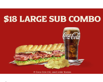 Get a large sub, medium fountain drink and chips or cookie for only $18.