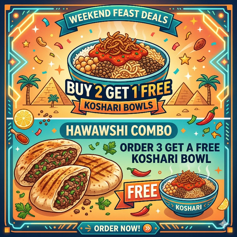 Order 3 Hawawshi sandwiches and get a FREE Koshari bowl on the house!