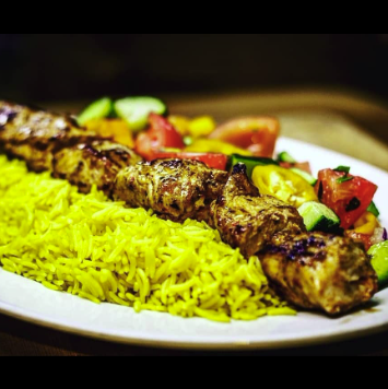 Chicken Shish Tawouk Plate 1 Chicken Skewer (white meat chunks) served with rice and choice of 2 items $18.49 | $9.00 (additional Skewer)