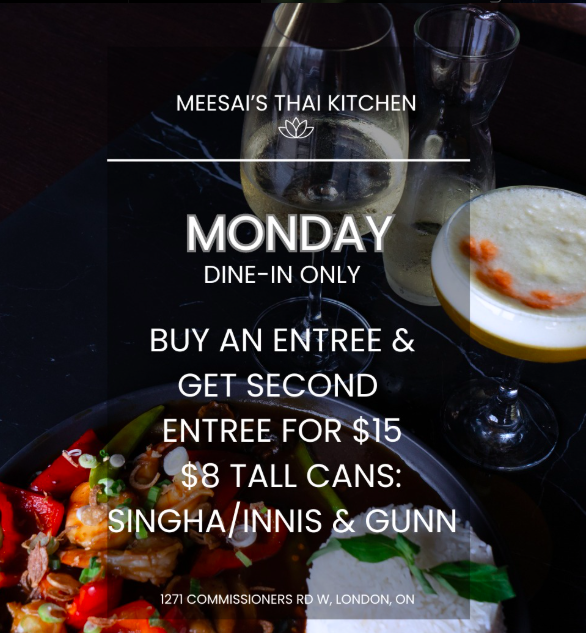 Buy Entree Get 2nd for $15 | $8 Singha, Innis & Gun Eat. Drink. Social ☎️ 519.657.3636 🇹🇭 meesaithai.com