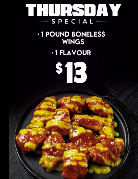 Thursday Special - 1 lb Boneless Wings (1 Flavour) 100% certified Halal
