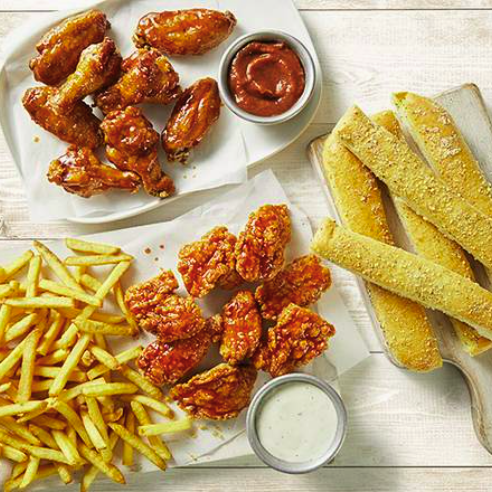 - Choice of two regular sides (fries, breadsticks, garlic bread or onion rings)