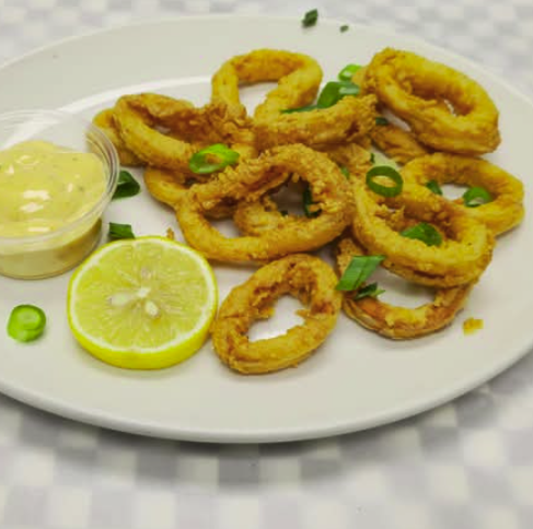 Crispy calamari rings, golden-fried and paired with a zesty chipotle aioli.
