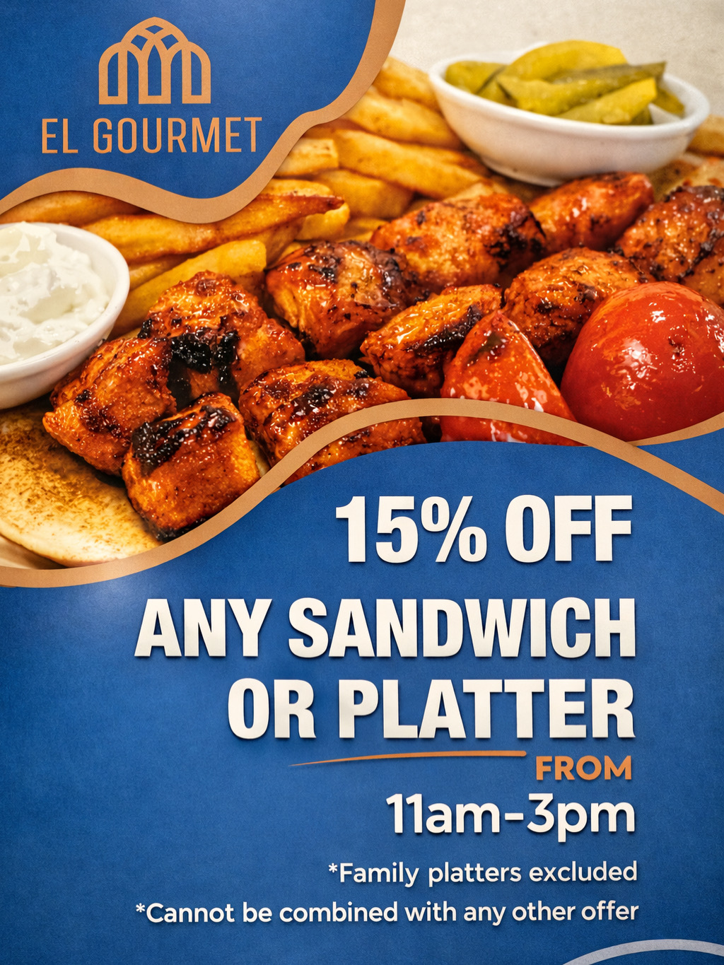 Can’t be combined with any other offers. till february only Family platter excluded 11am-3pm only