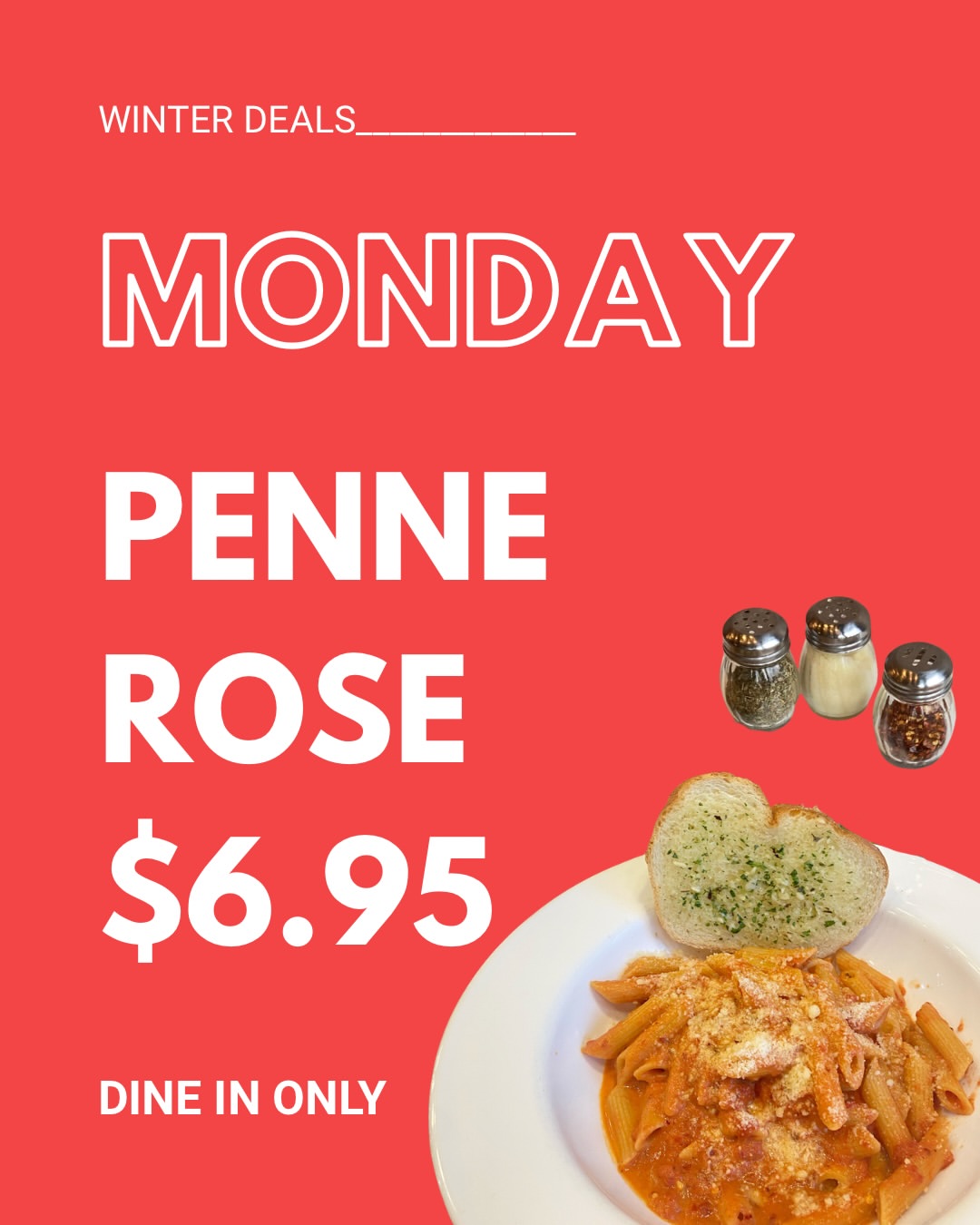 - Monday: Penne Rose $6.95