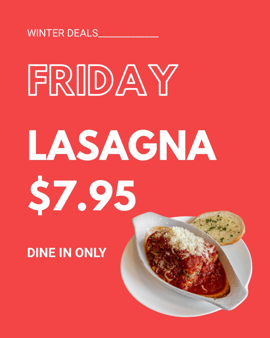 - Friday: Lasagna $7.95