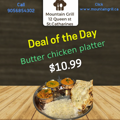Deal of the Day Monday Special - Butter Chicken Platter ORDER ONLINE OR BY PHONE 289-527-4142