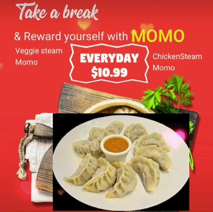Take a break and reward yourself with some delicious Momos Choose from Veggie or Chicken Steam Momo ORDER ONLINE OR BY PHONE 289-527-4142
