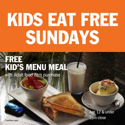 Enjoy a Free Kids Menu meal with Adult Food Item purchase.