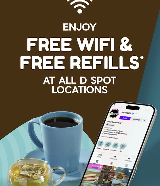 Enjoy FREE WIFI & FREE COFFEE & TEA REFILLS AT ALL D SPOT LOCATIONS!