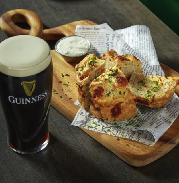 Warm, freshly baked, handmade Guinness* jalapeño cheddar bread, served with a garlic Parmesan dip.