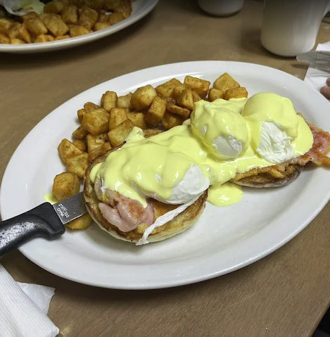 Canadian Peameal Eggs Benedict $16.99 (shown in image)