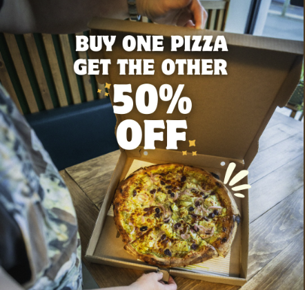 SPECIALITÀ DEL GIORNO - Buy Any Pizza and get the Second at 50% OFF!