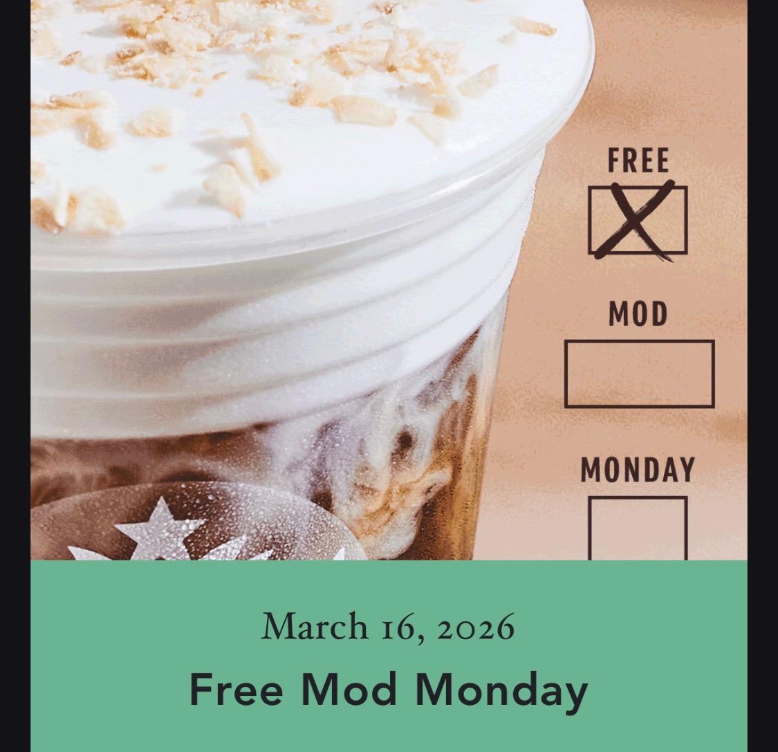 This is a new monthly benefit for Starbucks® Rewards members of all status levels.