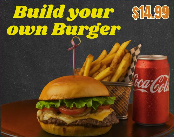 Build Your Own Burger + Fries + Pop - only $14.99!