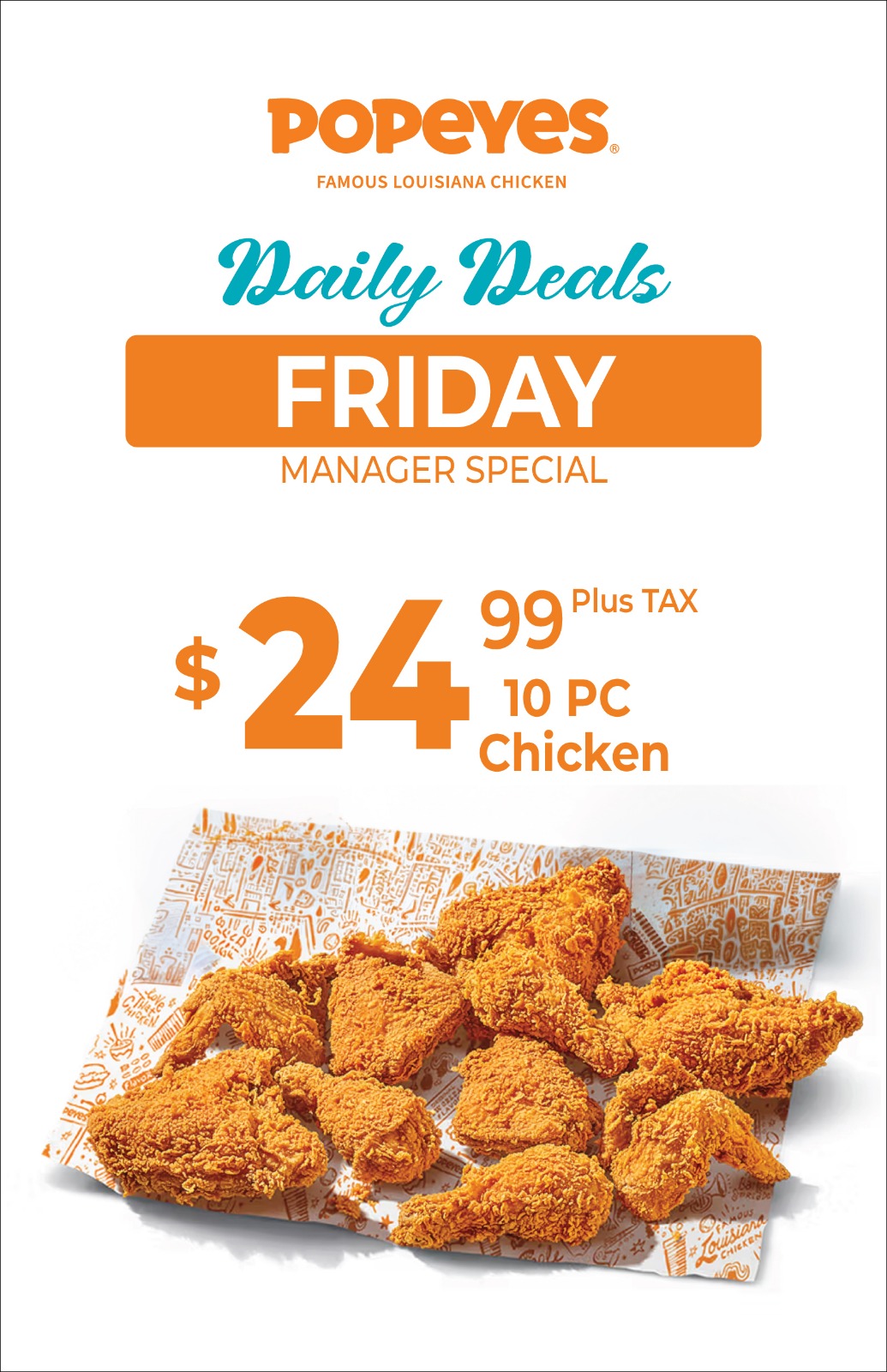 10 pc chicken for only $24.99 + tax
